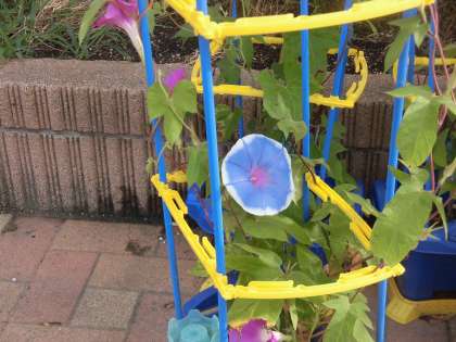 西日本を中心に豪雨の被害が広がっていますが、関東地方は大きな被害はないようです。今日は久しぶりの青空になりそうな朝ですね。1年生の育てている朝顔も大きな花が開いています。