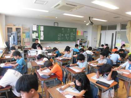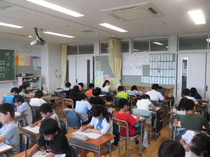 学期末らしく、ピーンと張りつめた空気の中、国語のテストをしていました。お邪魔しました。