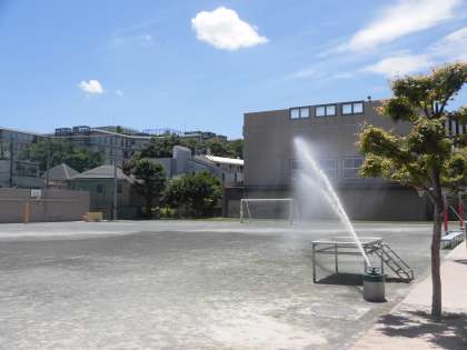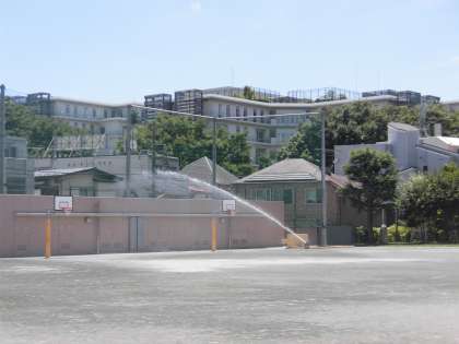 今日も暑いですね。スプリンクラーを撒いて涼をとります。