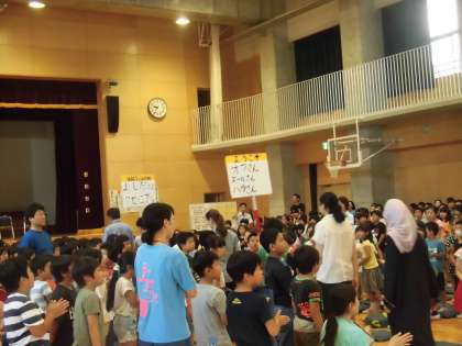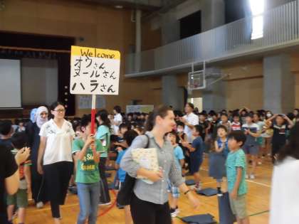 今年度1回目の国際理解集会が行われました。ロシア、シリア、台湾の方々をお招きしました。