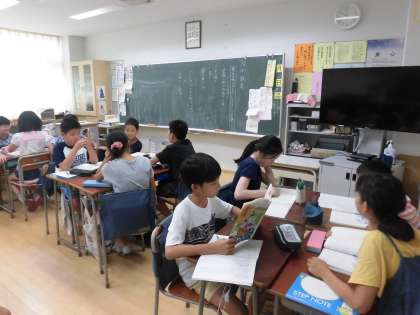 社会と国語の授業でした。和気あいあいと雰囲気でした。