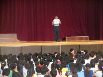 1学期の終業式が行われました。ちなみに今日は、暑さ対策のため、短縮バージョンの式になりました。明日から長期の休みに入ります。安全に気を付けて楽しい休みにしましょう。