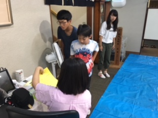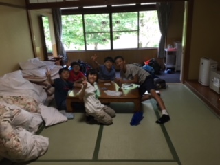 避難訓練が終了して、検温をしました。全員36度台で、元気です。その後部屋で自由に過ごしています。