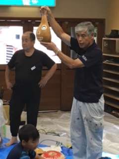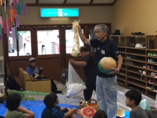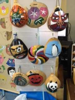 まず、ふくべの説明から始まります。ふくべとは、夕顔の皮を乾燥させたものです。ちなみに、栃木県は夕顔の生産量95%を誇るそうです。このふくべの皮に絵を描いたり、お面を作ったりします。