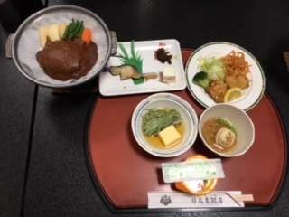 かなり豪勢な夕食です。お昼が早かったので、お腹はペコペコです。