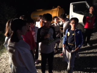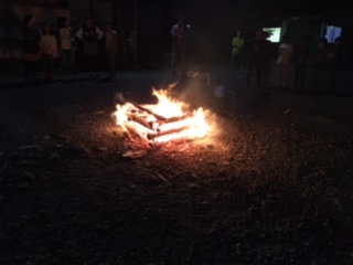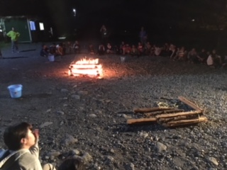 炎が消えかかっています。小学校6年生の最後のキャンプファイヤーです。なんだか寂しいね。キャンプファイヤー係さん、ご苦労様でした。