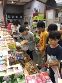 入浴の隙間に、お土産を買います。2,000円の予算がありますが、日光江戸村で買うお土産の分を差し引いた分だけ買います。結構頭を使います。
