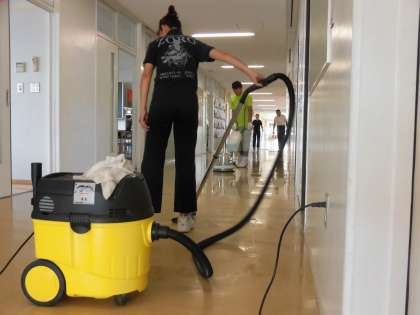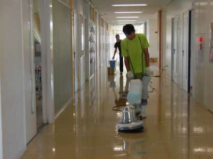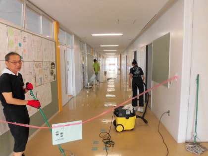 今日は3階のワックスがけです。主事さんたちが総出で行っています。ご苦労様です。