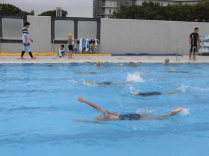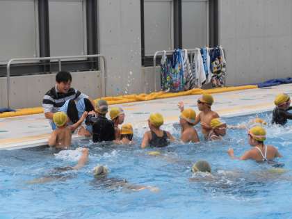夏休み最後の水泳指導でした。最期は、宝探しをして大いに盛り上げりました。