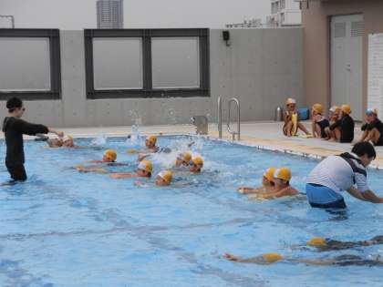 最後のプールは、ビート板を使った練習をしたり、宝探しをしたりしました。1年生対2年生は、なんと1年生が勝利!ただ、態度面ではさすがに2年生の勝利でした。