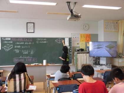 台風一過の中、6年生の算数の様子で。