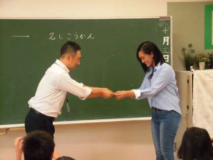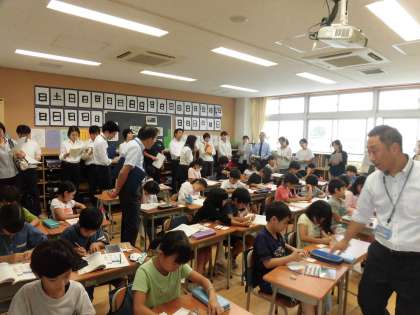 3年1組で研究授業がありました。名刺をつくったり交換したりしながらローマ字について学習しました。区内のいろいろな学校から先生方がいらしゃいました。ご協力ありがとうございます。