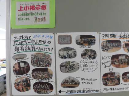 先日行われたオーストラリア国バンバリー市小学生との交流の様子が、上小掲示板に紹介されています。学校にお越しの際はどうぞご覧ください。