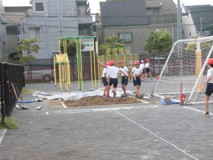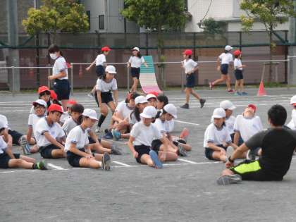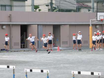 連合運動会に向けて、高跳び、100走、ハードル走、幅跳びに分かれて練習をしています。