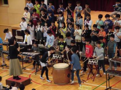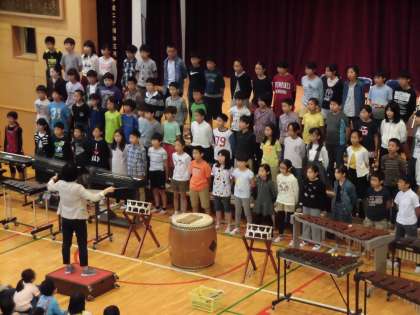 5年生は、「ウイズユースマイル」の合唱と、「なつまつり」の演奏をしました。