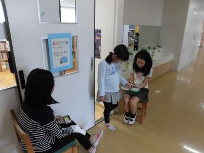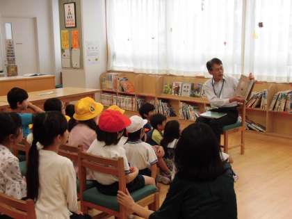 昼休みに校長先生による読み聞かせがありました。「ばむとけろのさみいあさ」、「さんまいのおふだ」、「わたし」の3冊を読んでくれました。図書委員会の子たちも手伝ってくれました。ありがとう。