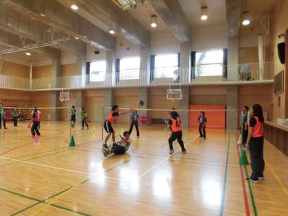 今日の午後は体育実技研修を行いました。先生方も楽しみながらネット型の学習を研修しました。