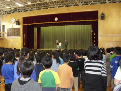 校歌斉唱も元気よく歌い、体育館に響いていました。