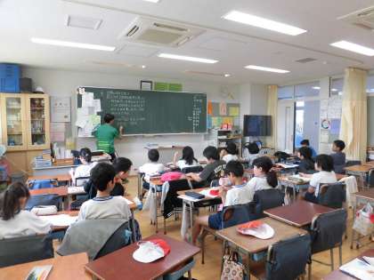 4年生少人数算数です。どのクラスも集中していました。