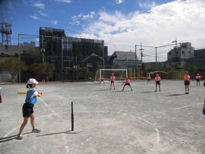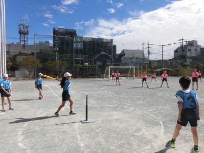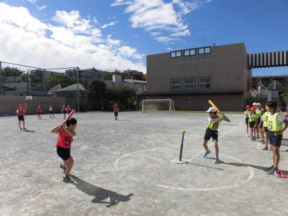 気持ちの良い青空の下でTボール。とても盛り上がっていました!