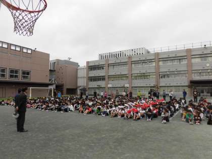 今月は不審者対応でした。大門先生が不審者役になりました。