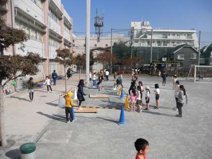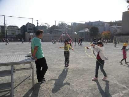 朝とは打って変わってぽかぽか陽気の中、今日も熱心になわとびに取り組んでいました。