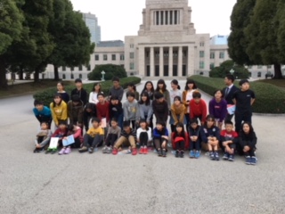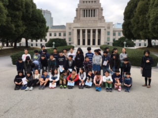 国会議事堂前で、集合写真を撮りました。これから帰校します。