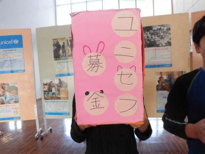 今日から国際委員会の子たちがユニセフ募金の取り組みをしています。どうもありがとう。水曜日までです。