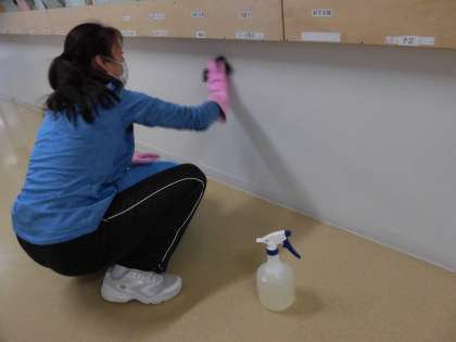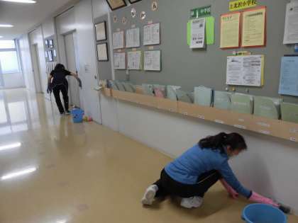 雨が降っているので今日は校舎内の作業です。主事さん方が壁をきれいにしてくれています。寒い中ありがとうございます。上小自慢の主事さんがたです!!