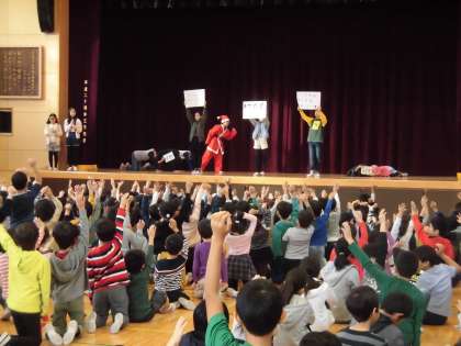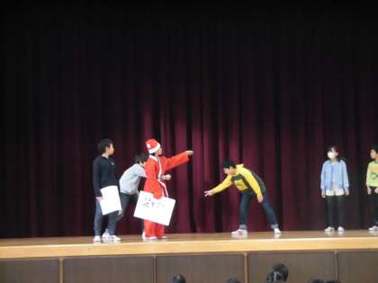 集会で「まちがい探し」をしました。サンタさんやトナカイくんも登場!盛り上がりました!!