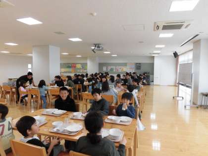 今日は1年生と6年生が一緒に給食を食べました。兄弟みたいないい関係も見られました。