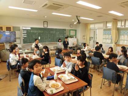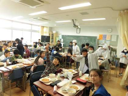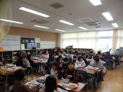 今日は、高学年の3クラスです。給食はみんないい顔してますね!