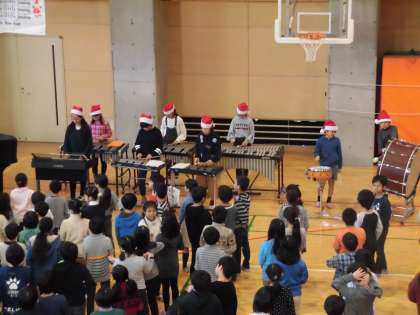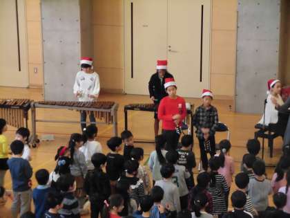 今朝の音楽集会は、♪We Wish you Merry Christmas とウィンターワンダーランド を歌いました。