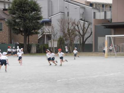 寒さをもろともせず校庭を駆け回りました。