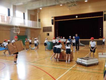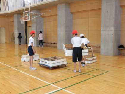 グランドではサッカー、体育館では跳び箱の学習に取り組みました。