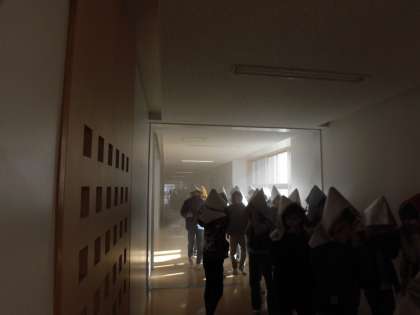 ミーティングルームから廊下まで煙が漏れ出して、廊下も視界が悪くなっていました。