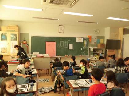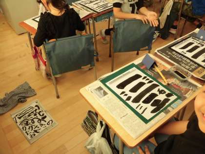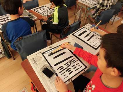 初めての毛筆に挑戦。「うまくいかないなあ」なんて声も聞こえてきましたが、集中して取り組んでいました。