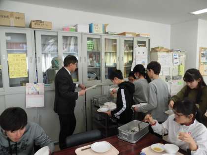 校長先生と会食の後は、職員室のワゴンに給食を返しました。普段入れない職員室ですから貴重な体験でしたね。