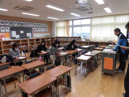3年生の地域安全マップづくりの説明会がありました。お手伝いをしてくださるボランティアの方が来てくださいました。ありがとうございます。