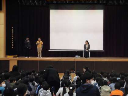国際理解集会では、JICAの職員の方をお呼びして、主にブルキナファソの現状についてお話がありました。2年生が歓迎の出し物をしてくれました。