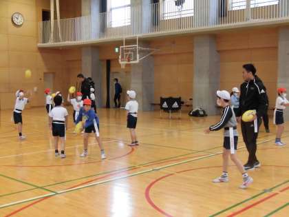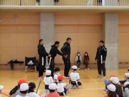リコーブラックラムズの方々をお迎えしてタグラグビー教室が行われました。今年は、ラグビーワールドカップも日本で行われますので、ラグビーに興味をもってくれるといいですね!