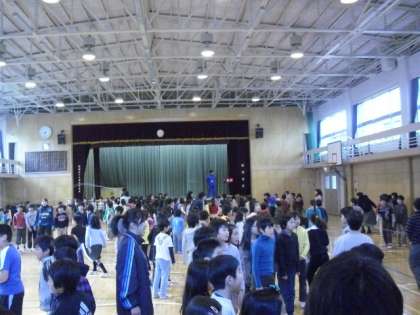 今回の体育朝会は長なわでした。今日の長なわではどのクラスもテンポよく跳んでいました。失敗してしまう子にも『どんまい』の掛け声があり、和気あいあいと行われました。どのクラスも友達と協力して、長なわを跳んでいました。