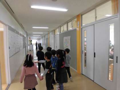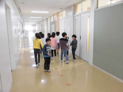 幼稚園保育園の子たちとの交流の準備ということで、校内を案内するリハーサルをおこないました。本番が楽しみですね!