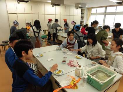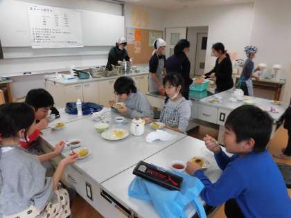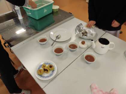 調理実習でスイートポテトと紅茶をつくりました。協力してつくり、最後はティータイム!