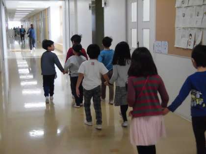 近隣の園児のみなさんが、来校してくれました。1年生ははりきって校内を案内してくれました。