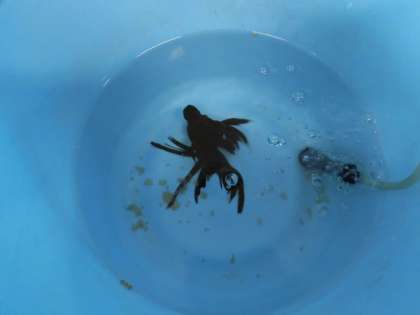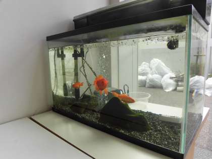 先日、6年生の男の子が1F玄関ホールの金魚くんの異変に気が付き、主事さんに連絡してくれました。連絡を受けた主事の心優しき生き物大好きな福田主事さんが、救出してくれて、主事室で療養中です。元気に水槽に帰った報告ができるように祈ってください!6年生の男の子、発見してくれてありがとう。