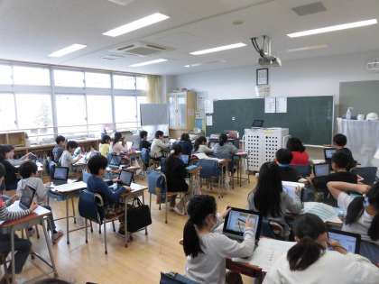 タブレットを使って漢字の練習、俳句づくり、タグラグビーに取り組んでいました。