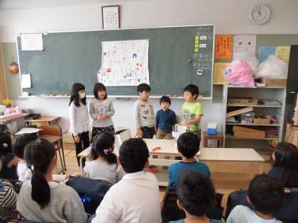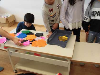 3学期のお楽しみ会をしていました。出し物を考えてみんなで楽しみました。亀の折り紙が人気でしたね!