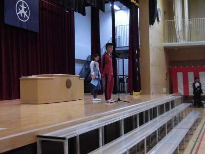 児童代表の言葉を言ってくれた2人は、とても立派に発表できました。頼もしいですね。生活指導の大門先生から春休みの生活についての話がありました。安全に過ごしてくださいね!