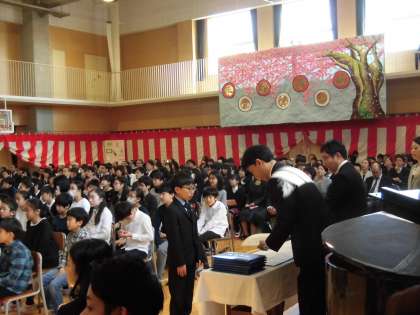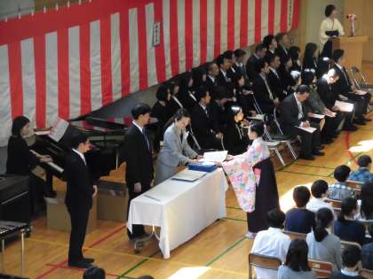 証書授与の補助などは、歴代の担任の先生方がしてくれました。大人になったら、あの時・・・と思い出し、感謝の気持ちをもってくれるとありがたいです。